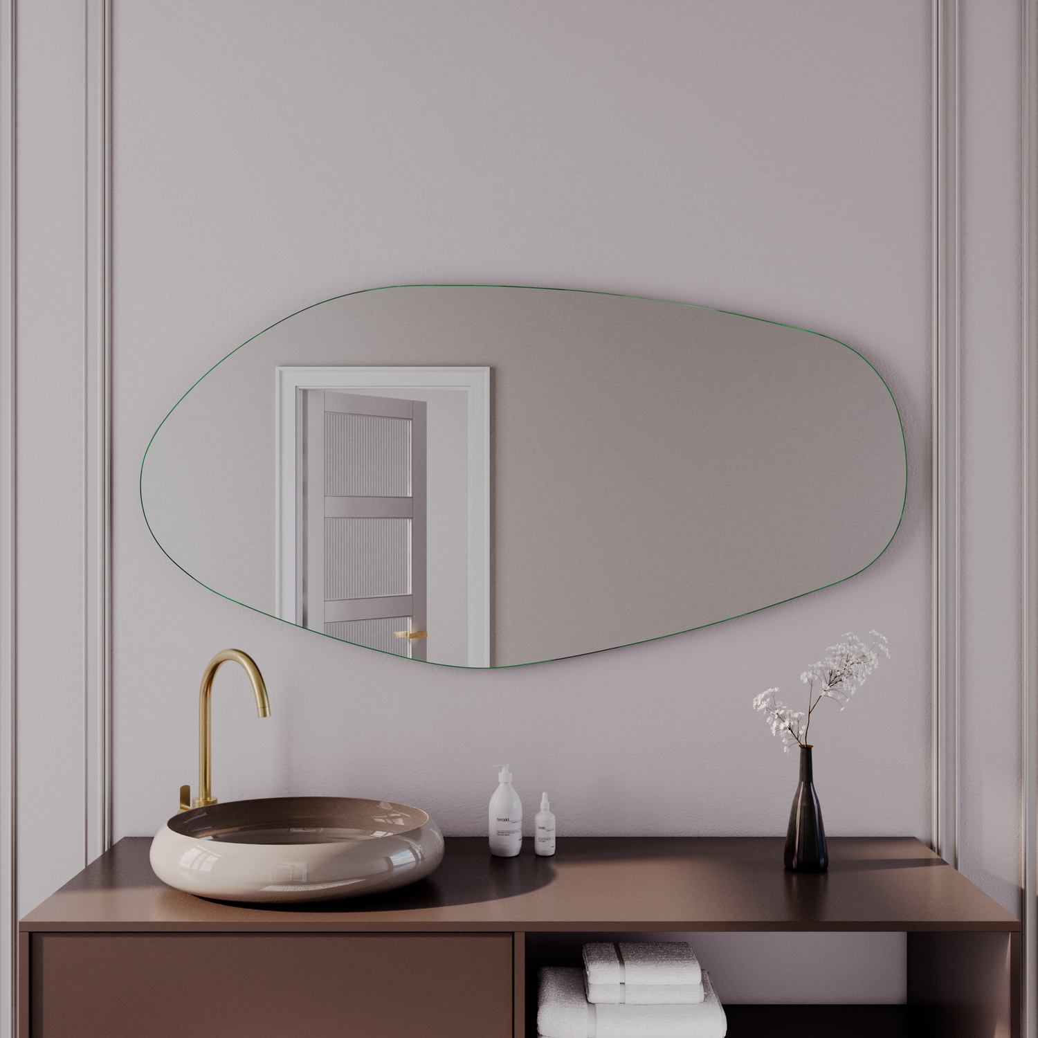 Der SALTON ASM wird als Spiegel nach Maß gefertigt. So können Sie die Größe exakt auf Ihre Wandfläche, Ihren Waschtisch oder Ihr Möbelstück abstimmen. Auch außerhalb des Badezimmers – etwa im Schlafzimmer, Flur oder im gewerblichen Bereich – setzt der asymmetrische Kristallspiegel dekorative, aber dezente Akzente.