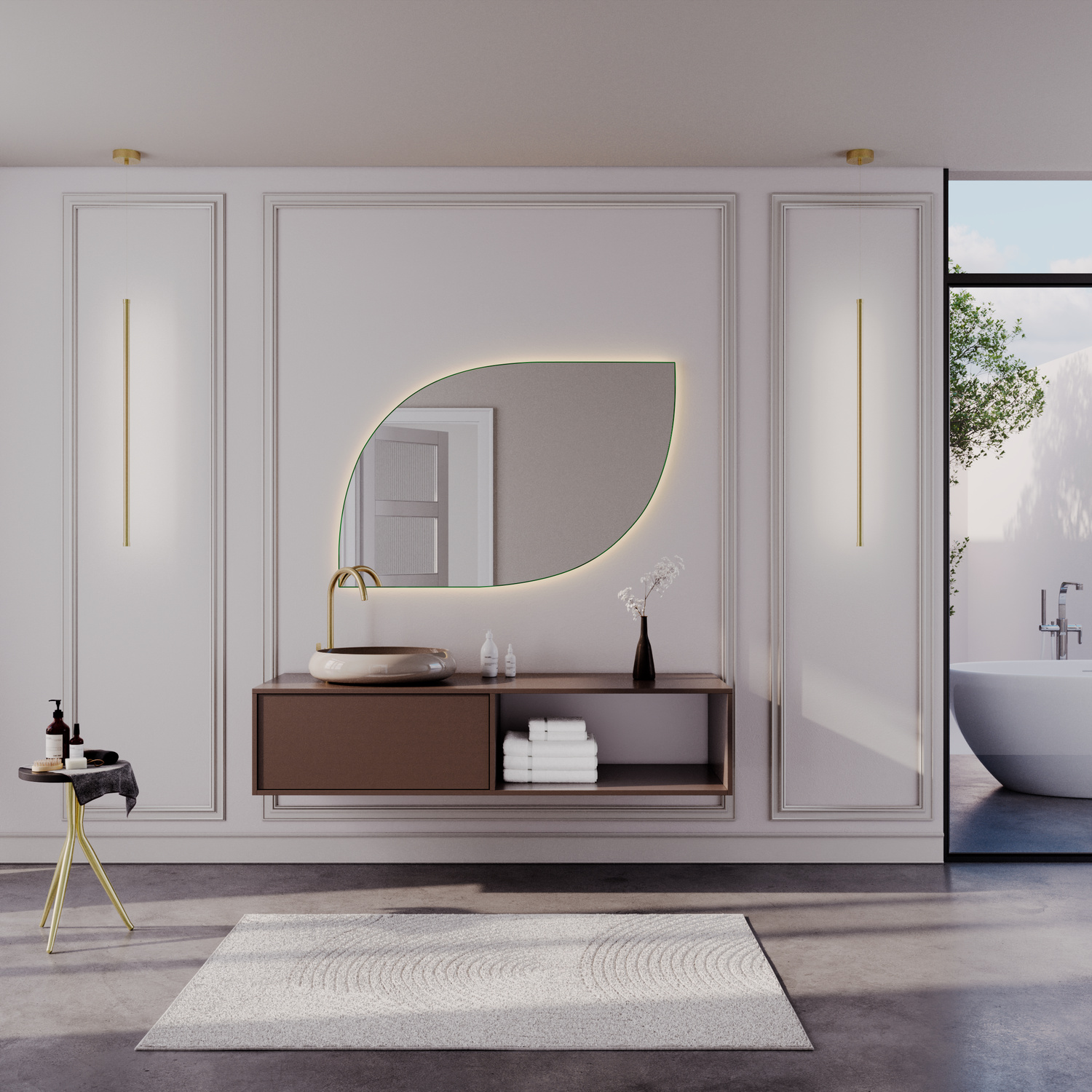Der asymmetrische Spiegel ERIE ASM ist die lichtlose Variante der ERIE-Serie – ideal, wenn Sie ein außergewöhnliches Spiegeldesign ohne integrierte Beleuchtung suchen. Die weich geschwungene, asymmetrische Form setzt einen modernen Akzent und lockert gerade Wandflächen im Bad, Flur oder Schlafbereich auf.