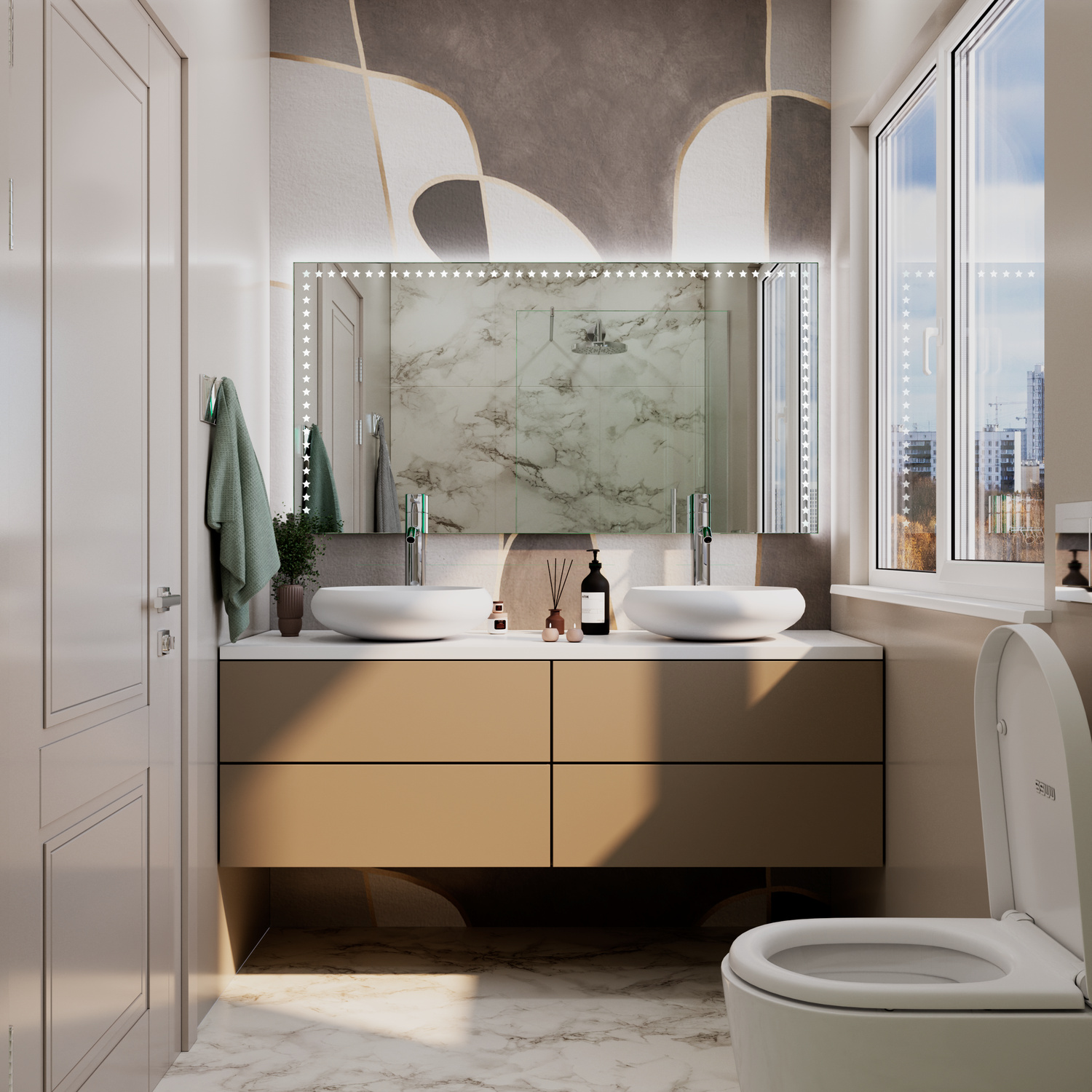 DerBadspiegel Caen, ausgestattet mit LED-Beleuchtung links, rechts und oben, verleiht Ihrem Badbereich nicht nur eine optische Aufwertung, sondern schafft auch eine behagliche Wohlflatmosphe.