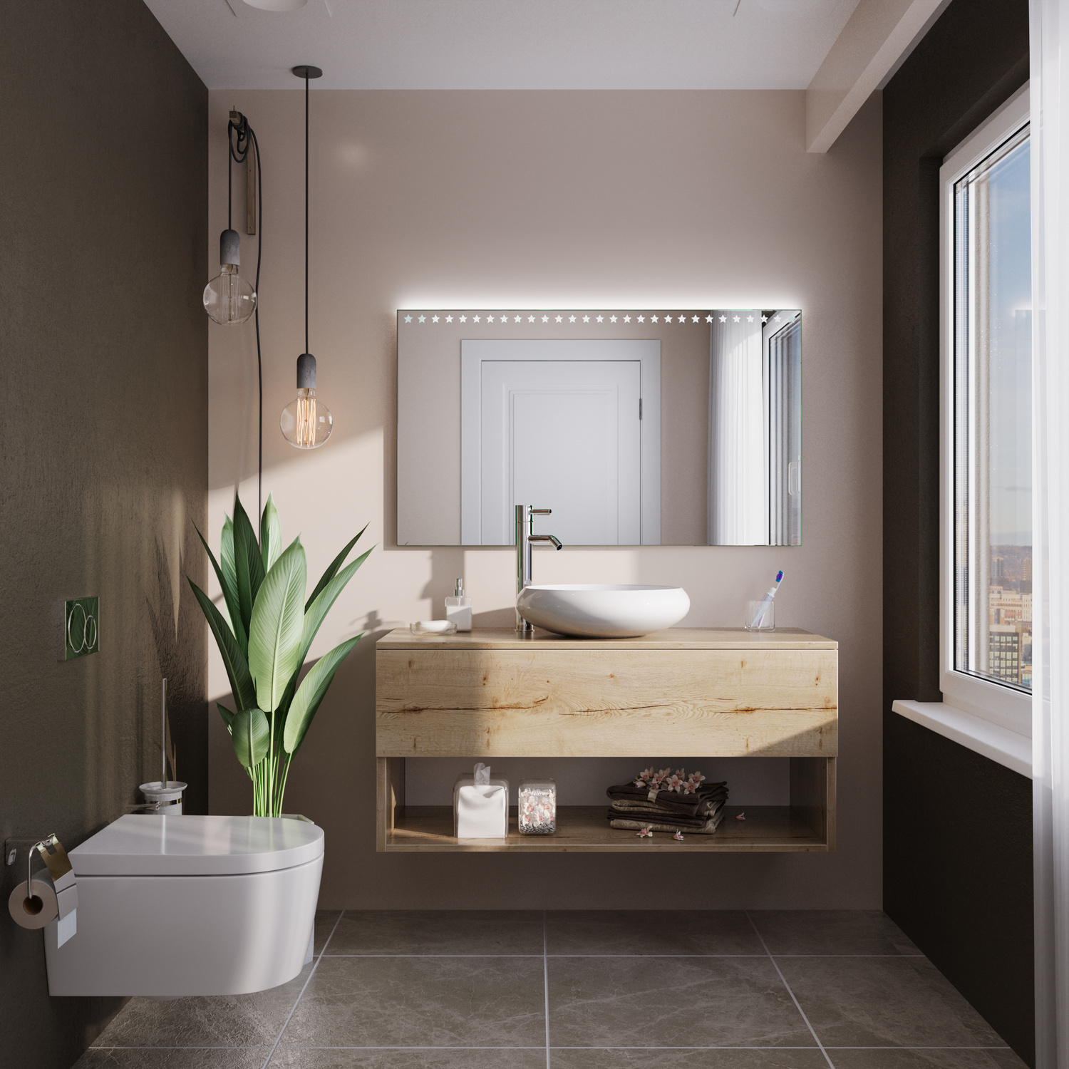 DerBadspiegel LeMansbesticht mit einem modernen und zauberhaften Sternenmuster oben, das Ihrem Badbereich eine einzigartige Note verleiht und eine wunderbare Atmosphe schafft.