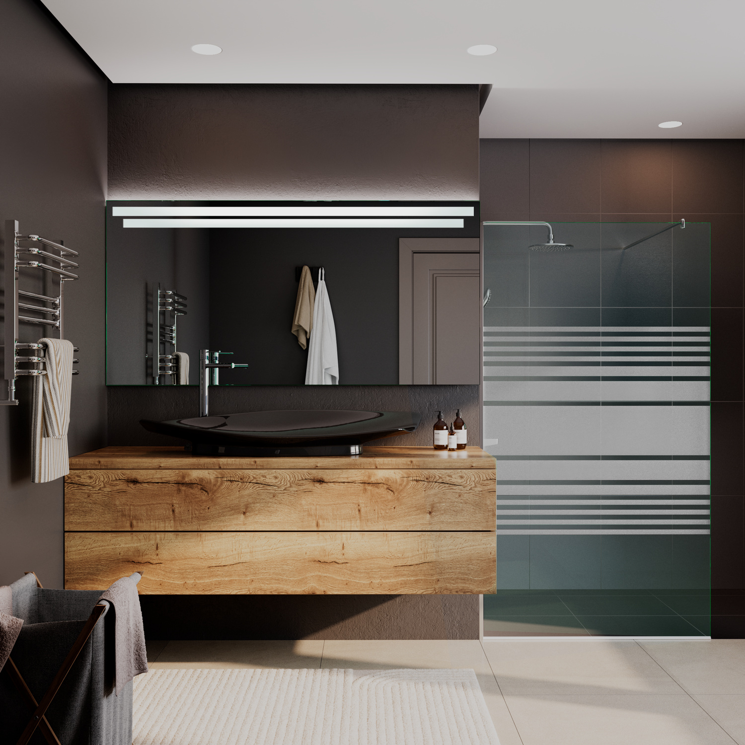 Mit einer doppelten satinierten Leuchtflhe von ca. 10 mm oben erzeugt der Badspiegel Nancy ein beeindruckendes Beleuchtungseffekt, sowohl als Ambiente-Beleuchtung als auch f praktische Zwecke wie Schminken, Rasieren oder Styling.