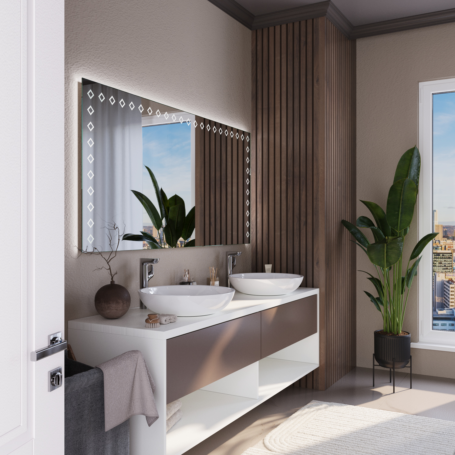 Mit dem Badspiegel Pau verwandeln Sie Ihr Badezimmer in eine einladende Wohlfloase. Genien Sie die harmonische Beleuchtung und das stilvolle Design dieses exklusiven Spiegels und erleben Sie jeden Tag ein Stkchen Luxus in Ihrem Zuhause.
