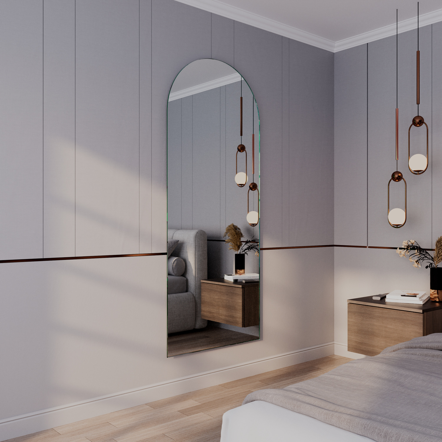 Erleben Sie die perfekte Symbiose aus Ästhetik und Funktion. Der Bogenspiegel ist nicht nur ein Spiegel, sondern ein Designobjekt, das durch seine schlichte Eleganz und moderne Formgebung begeistert. Ein Must-have für alle, die Wert auf hochwertige Materialien und stilvolles Wohnen legen.