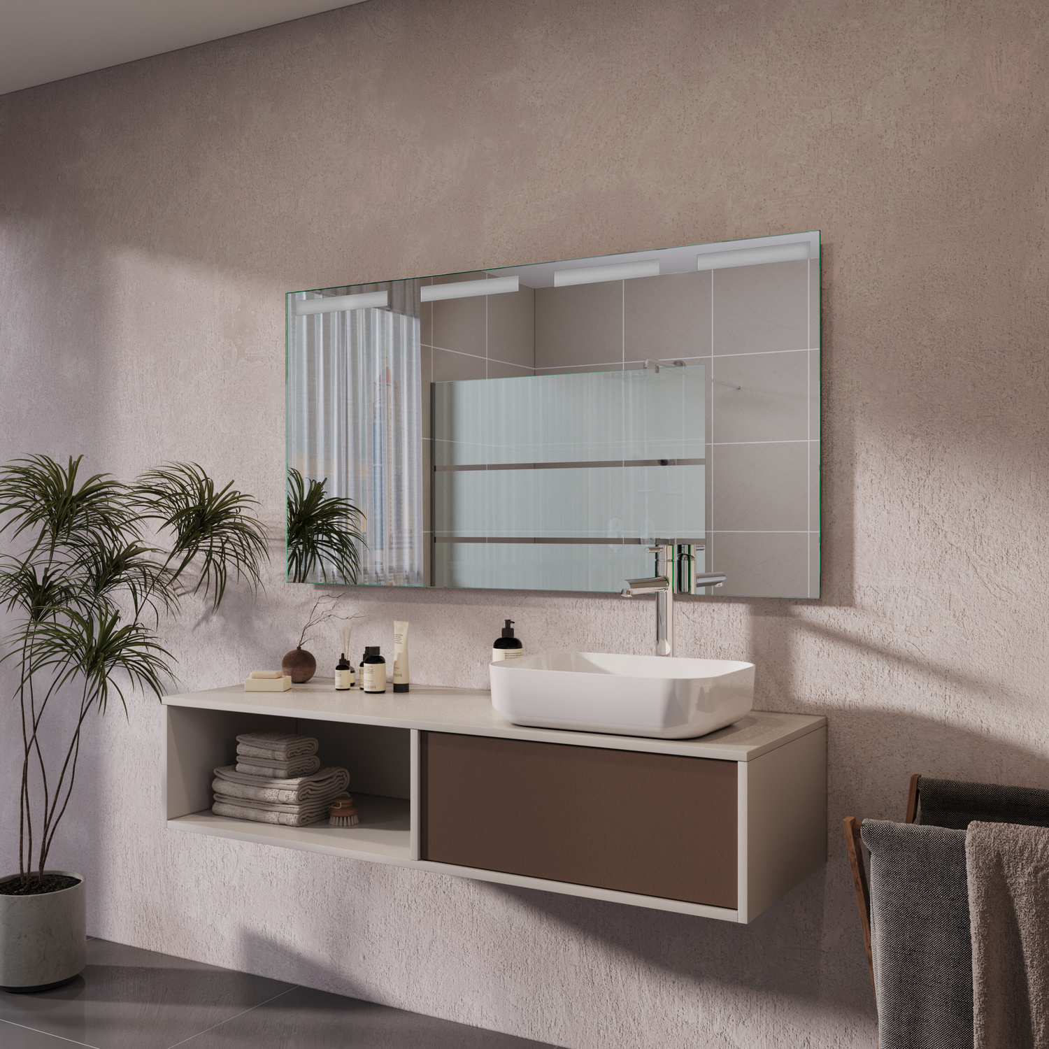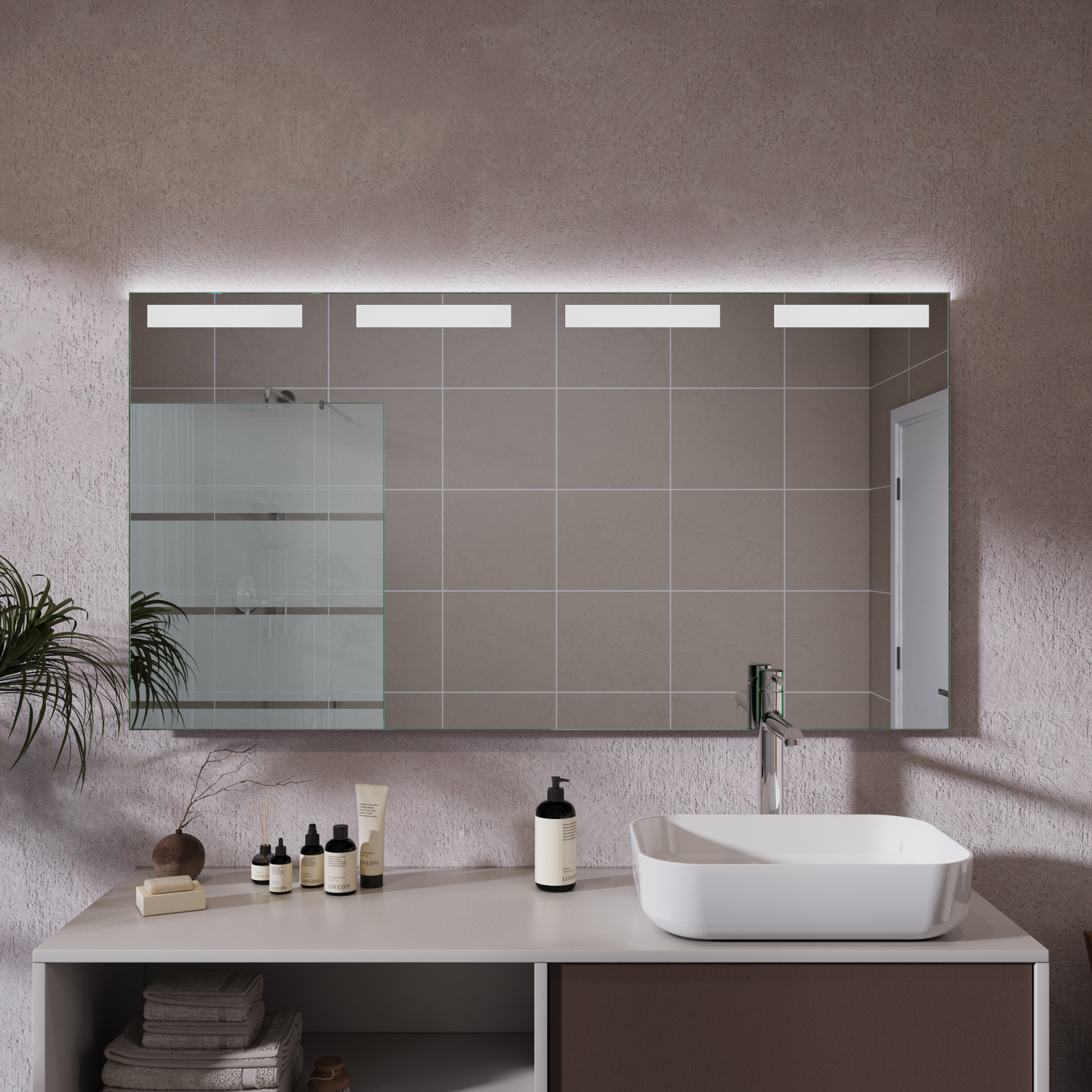 Der Badspiegel TRETS mit LED-Beleuchtung oben kombiniert modernes Design mit funktionaler Eleganz. Er verleiht Ihrem Badezimmer einen stilvollen Akzent und sorgt gleichzeitig für eine angenehme und gleichmäßige Ausleuchtung. Durch die präzise Verarbeitung und hochwertigen Materialien wird dieser Spiegel zum echten Blickfang in jedem Badbereich.