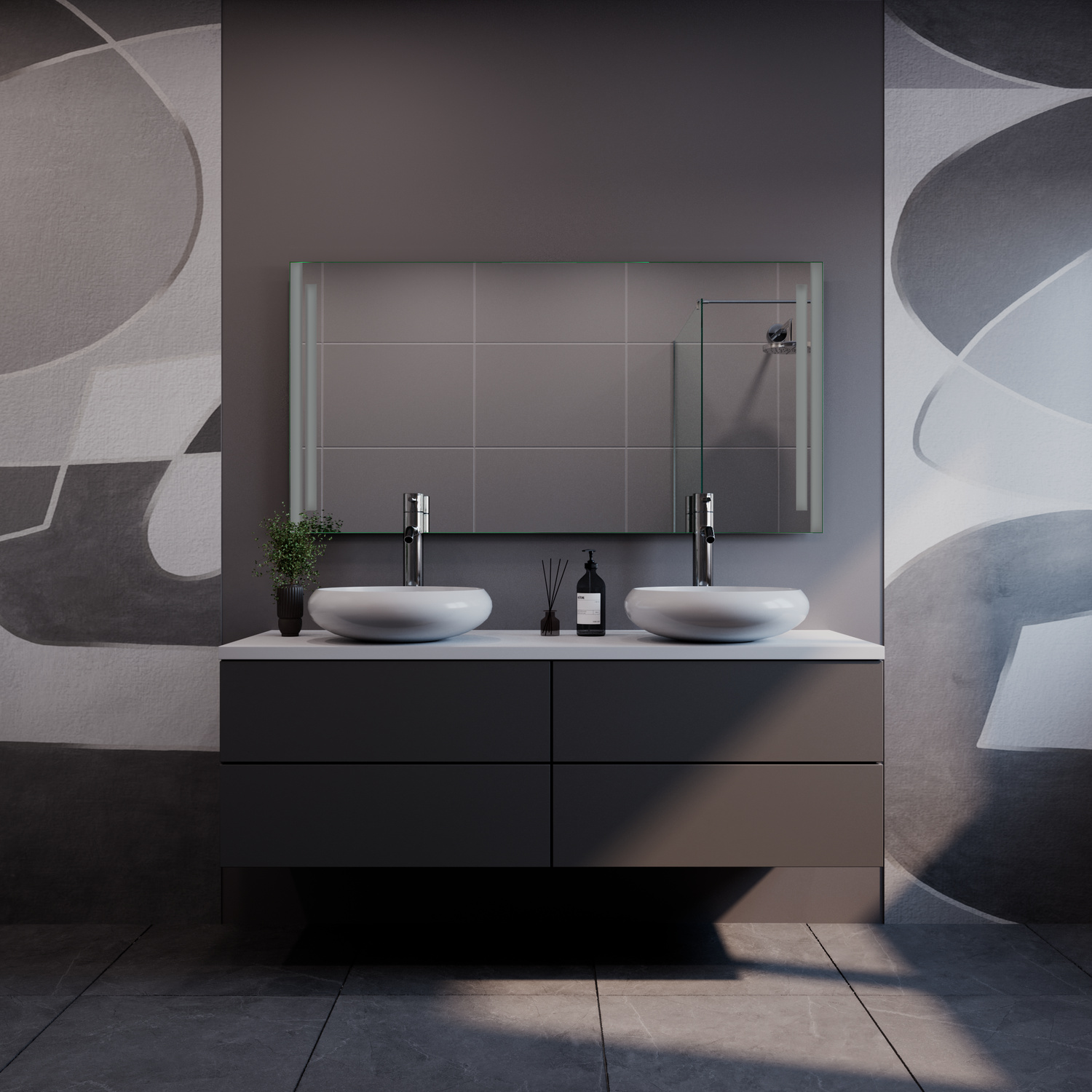 Durch die seitliche LED-Beleuchtung wird das Gesicht gleichmäßig ausgeleuchtet, ohne harte Schatten zu erzeugen. Der Spiegel eignet sich ideal für tägliche Anwendungen wie Rasur, Hautpflege oder Schminken und fügt sich harmonisch in unterschiedliche Badkonzepte ein.