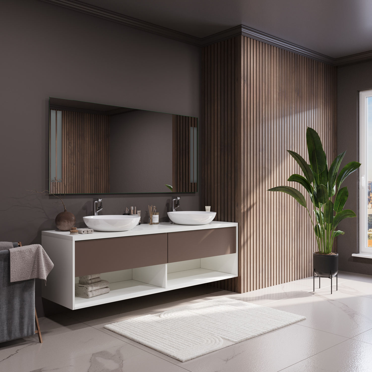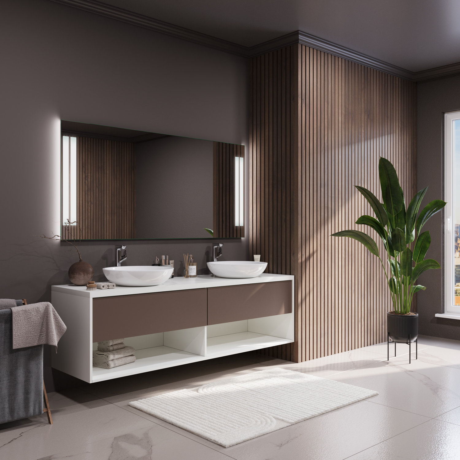 Mit seiner klaren Linienführung fügt sich der CALA MILLOR harmonisch in unterschiedliche Badkonzepte ein. Er eignet sich sowohl für großzügige Hauptbäder als auch für kompakte Gäste-WCs. Die satinierten Leuchtflächen setzen dezente Akzente, ohne das Gesamtbild zu dominieren.