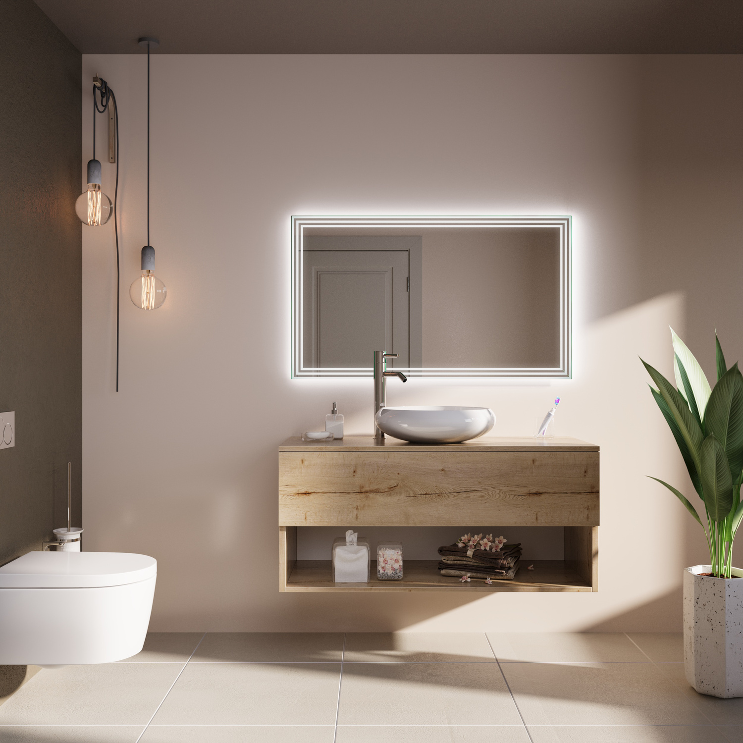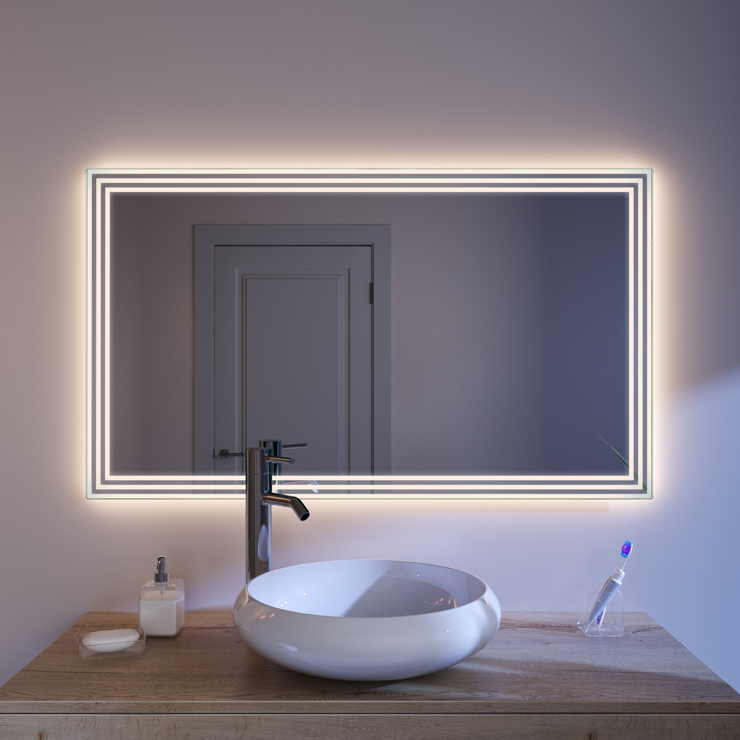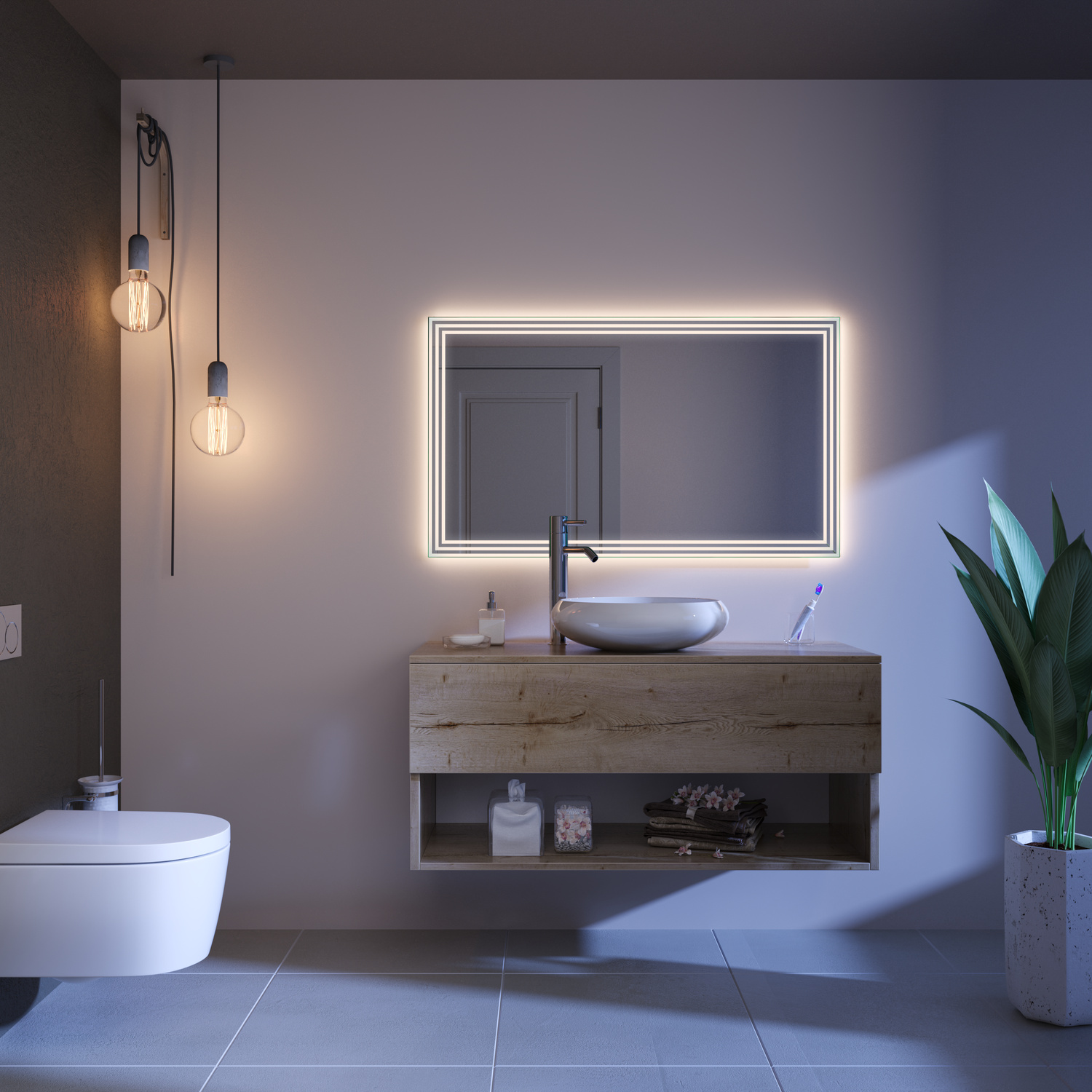 Der Badspiegel CROTONE vereint modernes Design mit fortschrittlicher Technologie. Seine dreifach satinierte Leuchtfläche rundherum sorgt für eine gleichmäßige, blendfreie Ausleuchtung des Badezimmers. Klare, polierte Kanten und hochwertiges Kristallglas garantieren eine brillante Lichtreflexion und setzen stilvolle Akzente. Gefertigt nach den deutschen Spiegelnormen DIN EN 1036 und den EU-CE-Richtlinien steht der Badspiegel CROTONE für höchste Qualität, Sicherheit und Langlebigkeit.