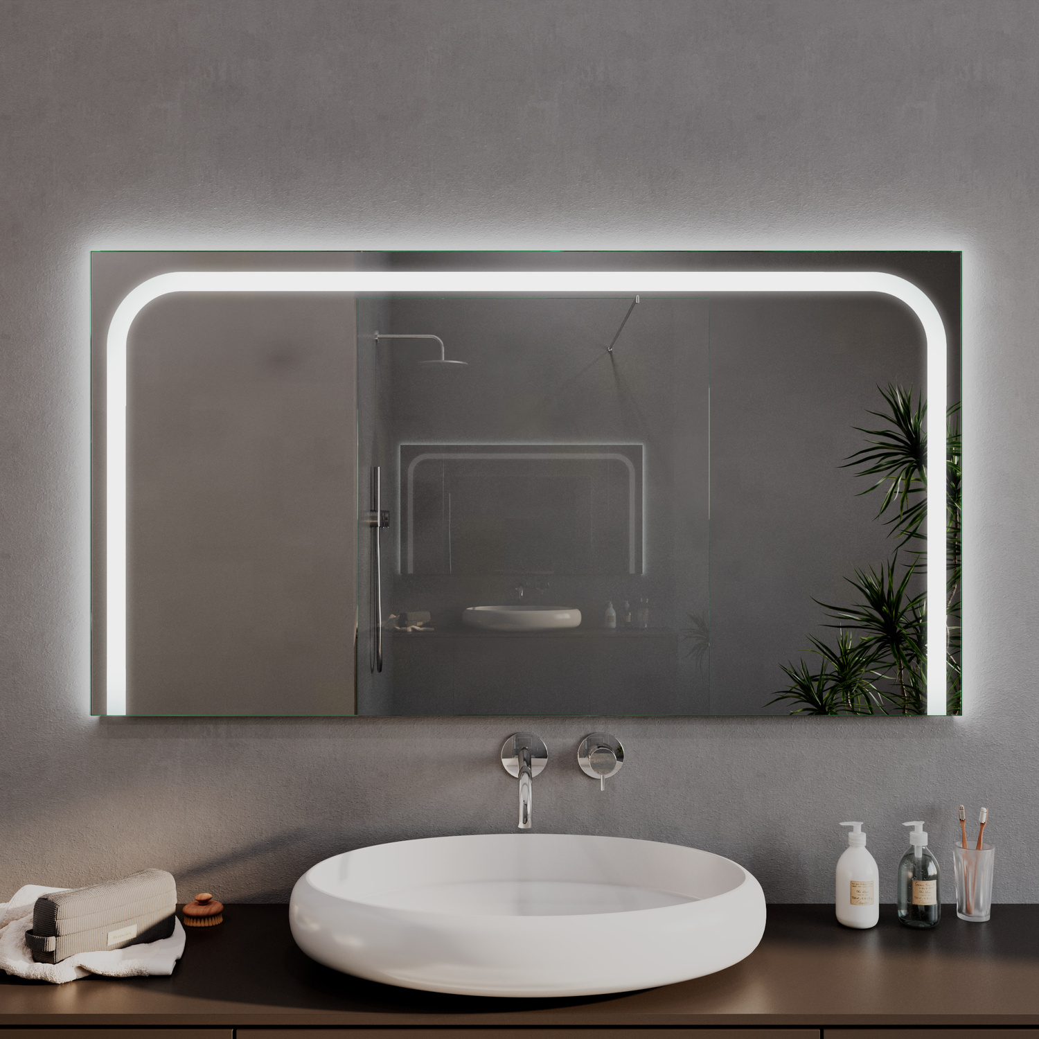 Der stilvolle Badspiegel FOIX mit LED-Beleuchtung kombiniert modernes Design mit funktionaler Eleganz und bietet eine hochwertige Lösung für Ihr Badezimmer. Mit LED-Beleuchtung an den Seiten und an der Oberkante sorgt dieser Spiegel für eine gleichmäßige, blendfreie Ausleuchtung und schafft eine angenehme Wohlfühlatmosphäre. Dank der Auswahl verschiedener Lichtfarben – von Warmweiß bis Neutralweiß – können Sie die Stimmung in Ihrem Bad individuell anpassen und gleichzeitig von einer hohen Energieeffizienz profitieren.