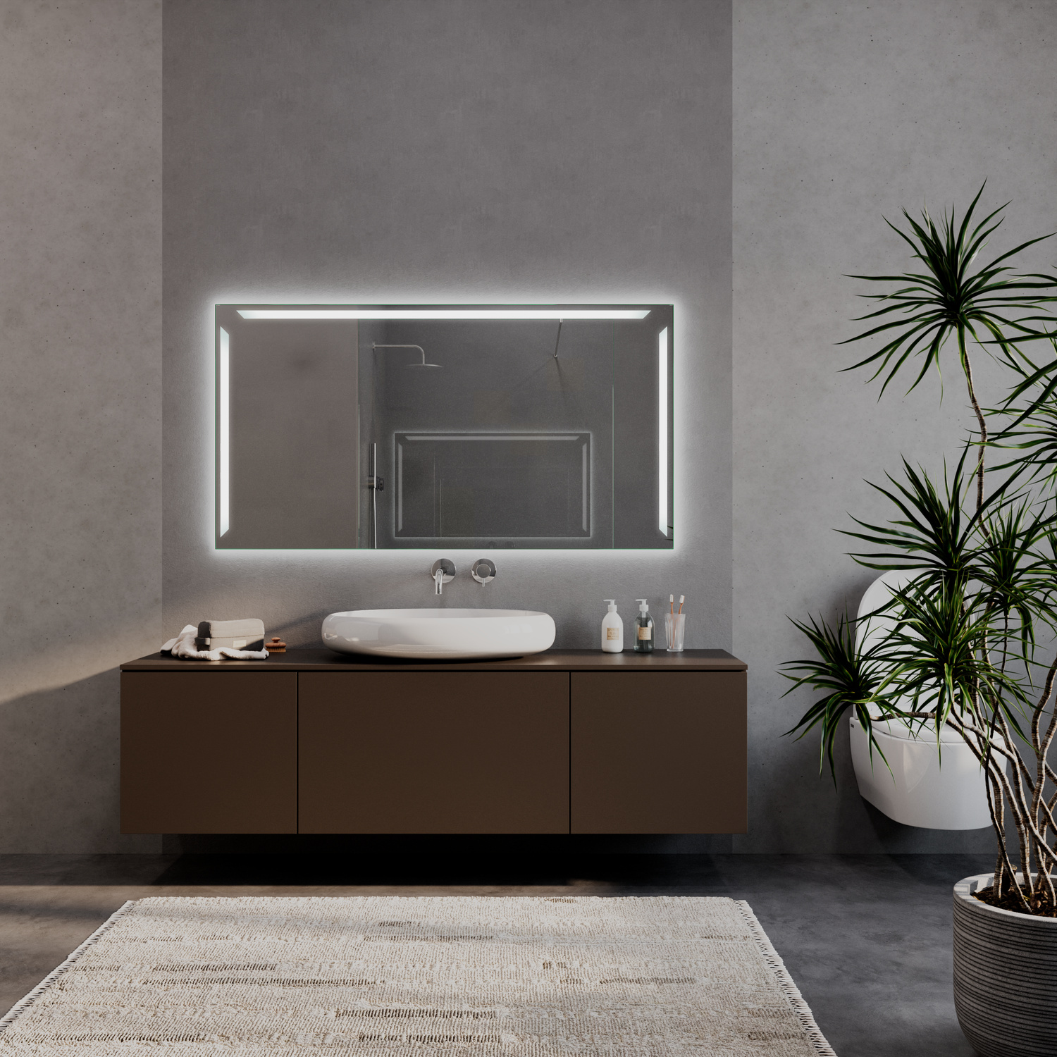 Der elegante Badspiegel GAP mit LED-Beleuchtung vereint modernes Design mit funktionaler Raffinesse und ist eine luxuriöse Ergänzung für jedes Badezimmer. Die integrierte LED-Beleuchtung in verschiedenen Farbtemperaturen sorgt für ein harmonisches Lichtambiente und gleichzeitig für eine deutliche Energieeinsparung gegenüber herkömmlichen Leuchtmitteln. Mit seinem klaren Design und seiner hochwertigen Verarbeitung verleiht der GAP Ihrem Badbereich eine exklusive und zeitlose Ausstrahlung.