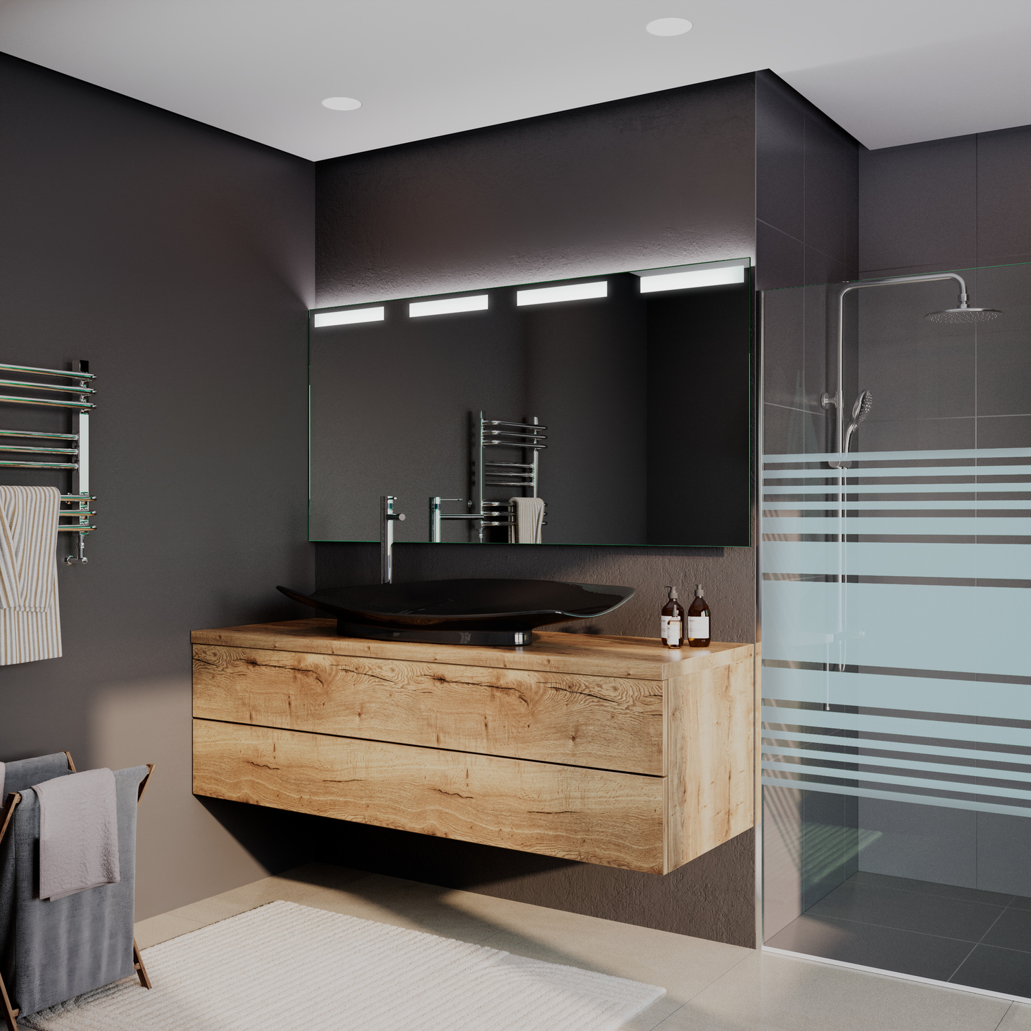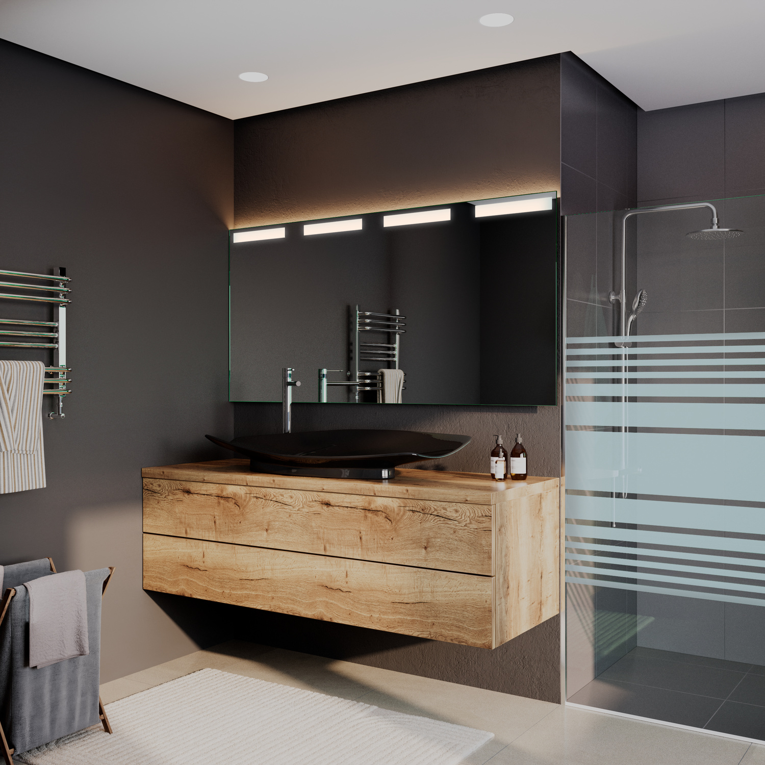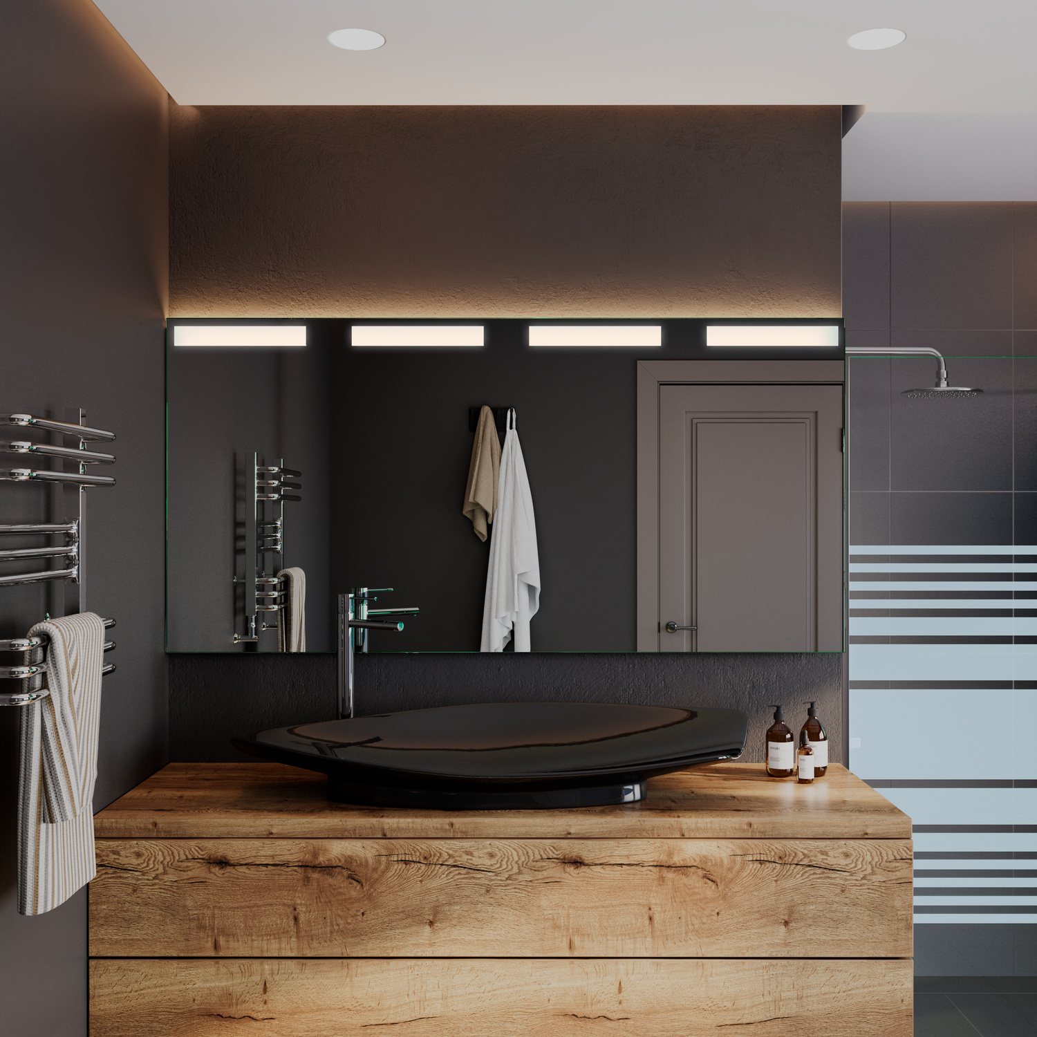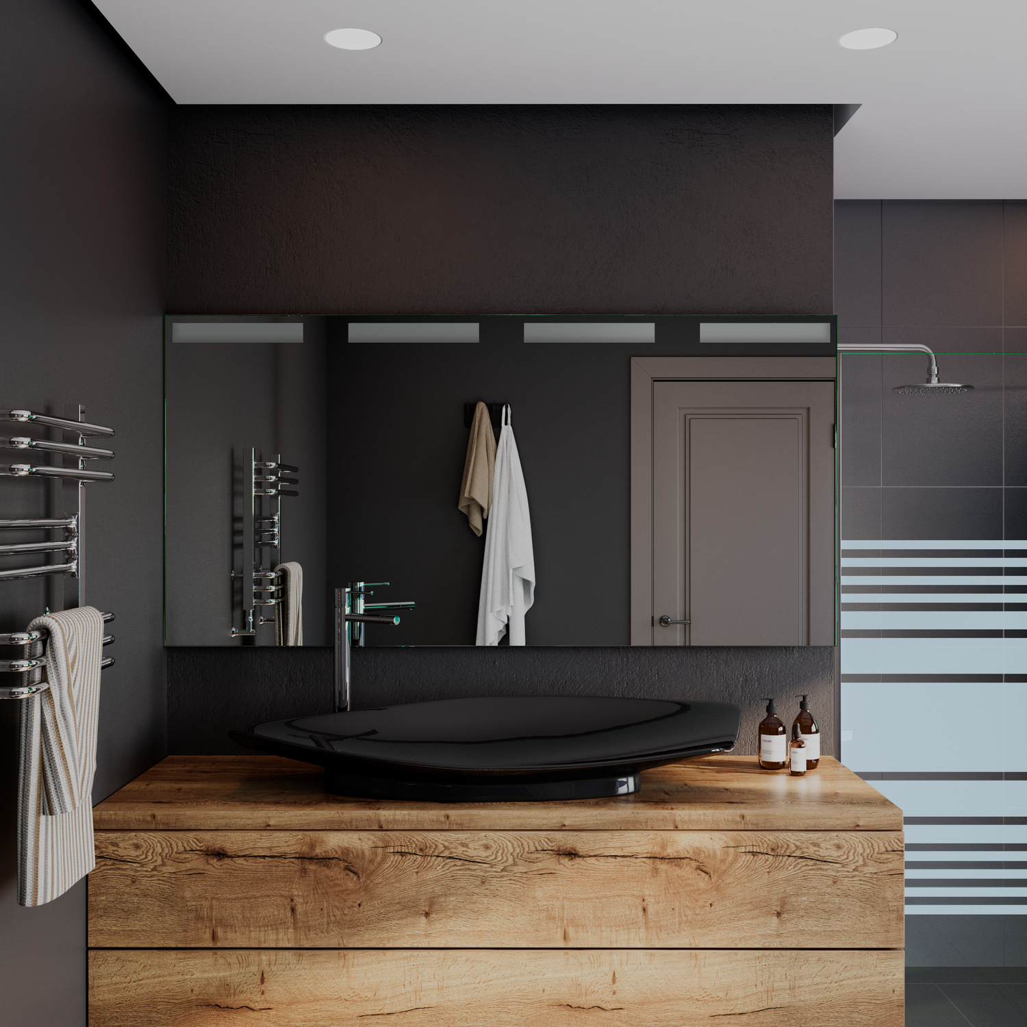 Der Badspiegel TRETS mit LED-Beleuchtung oben verbindet modernes Design mit funktionaler Alltagstauglichkeit. Die integrierte Lichtquelle sorgt für eine gleichmäßige, angenehme Ausleuchtung und setzt einen dezenten, stilvollen Akzent im Badezimmer.