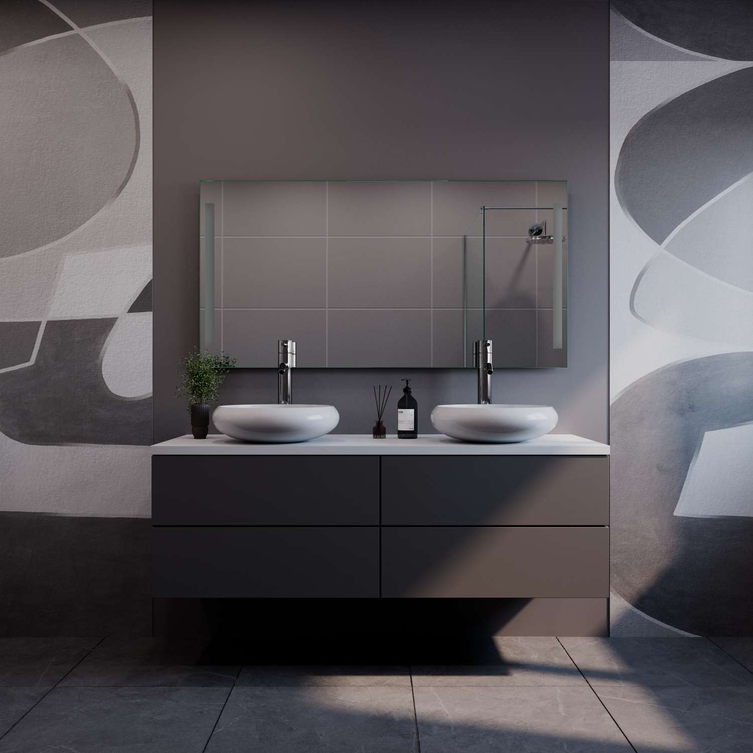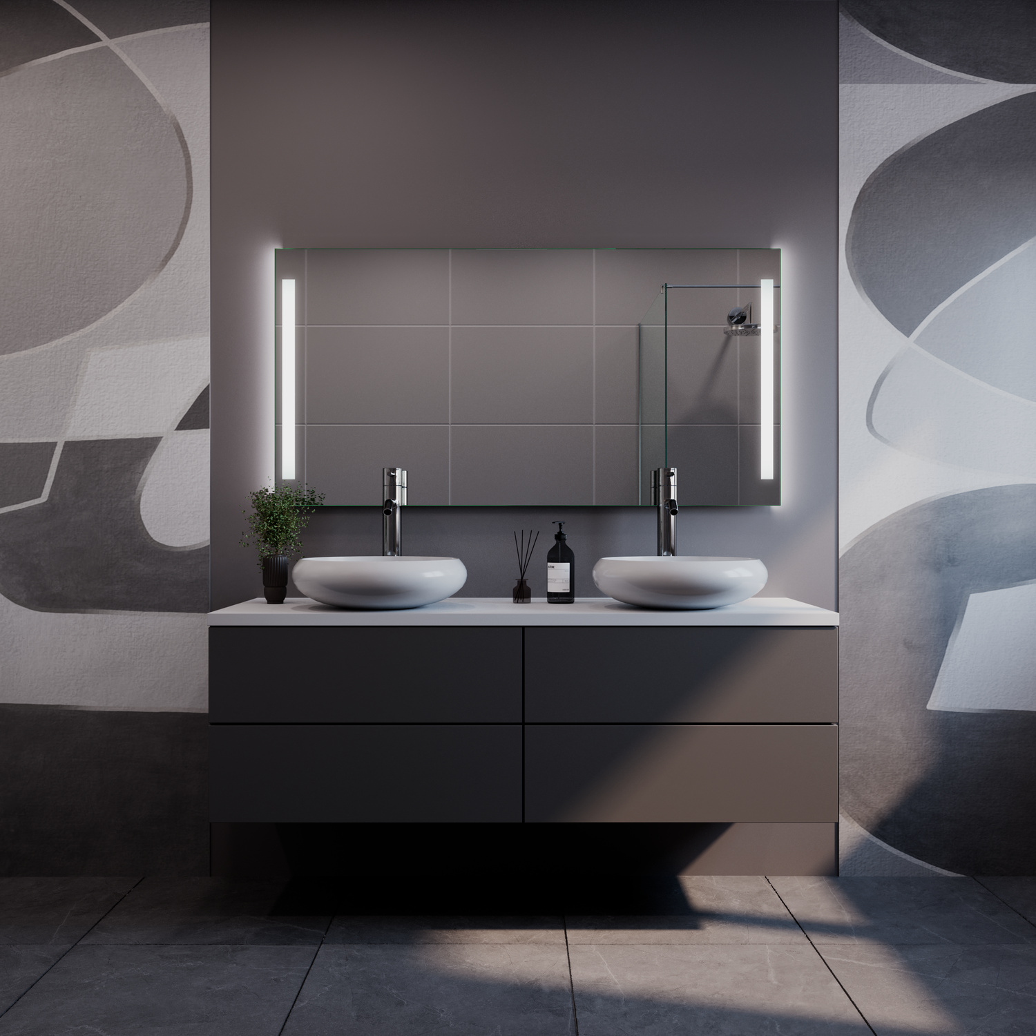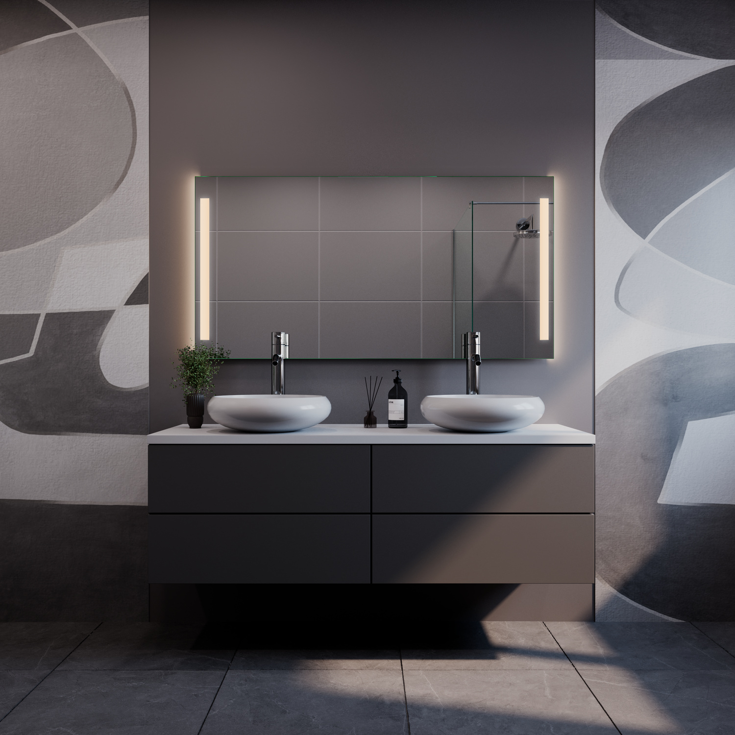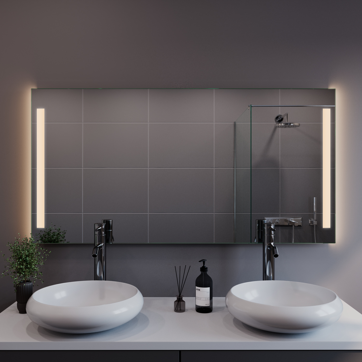 Die satinierte LED-Beleuchtung links und rechts sorgt für einen angenehmen, blendfreien Lichtausfall. Wählen Sie aus verschiedenen Lichtfarben – warmweiß, neutralweiß, kaltweiß oder RGB-/RGBWW-Farbwechsel – um Ihr Badezimmer perfekt zu beleuchten. Die energieeffiziente LED-Technologie spart dabei bis zu 90 % Strom im Vergleich zu herkömmlichen Leuchtmitteln.