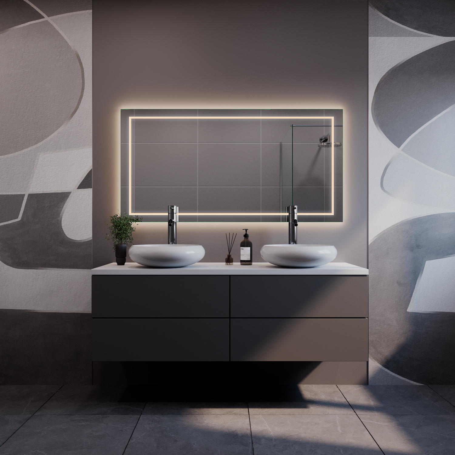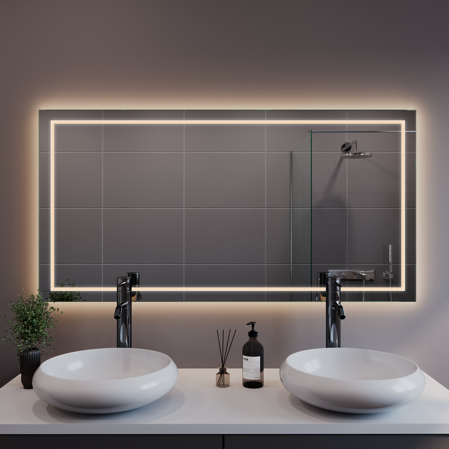Der Badspiegel ZARA ist die ideale Wahl, um Ihrem Badezimmer einen Hauch von Eleganz und modernen Komfort zu verleihen. Mit seiner umlaufenden LED-Beleuchtung schafft er eine warme, einladende Atmosphäre und wird zum stilvollen Mittelpunkt Ihres Badbereichs.